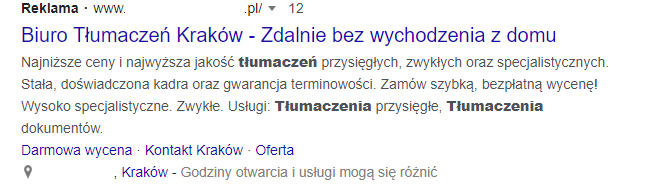To tylko kilka przykładów, które pokazują, jak szybko i prosto możesz odświeżyć twoje reklamy i zwrócić na nie większą uwagę odbiorcy. Pamiętaj, że jeśli twój biznes jest ogólnopolski także możesz wykorzystać lokalizację (konto Google powinno mieć podpiętą wizytówkę), choć nie zawsze będzie to się wiązać ze wzrostem konwersji. Jeśli wprowadzenie zmian w reklamach na koncie Google jest bardzo czasochłonne to czasem warto je odpuścić i zająć się optymalizacją czegoś innego, co faktycznie może poprawić wyniki twojej kampanii.