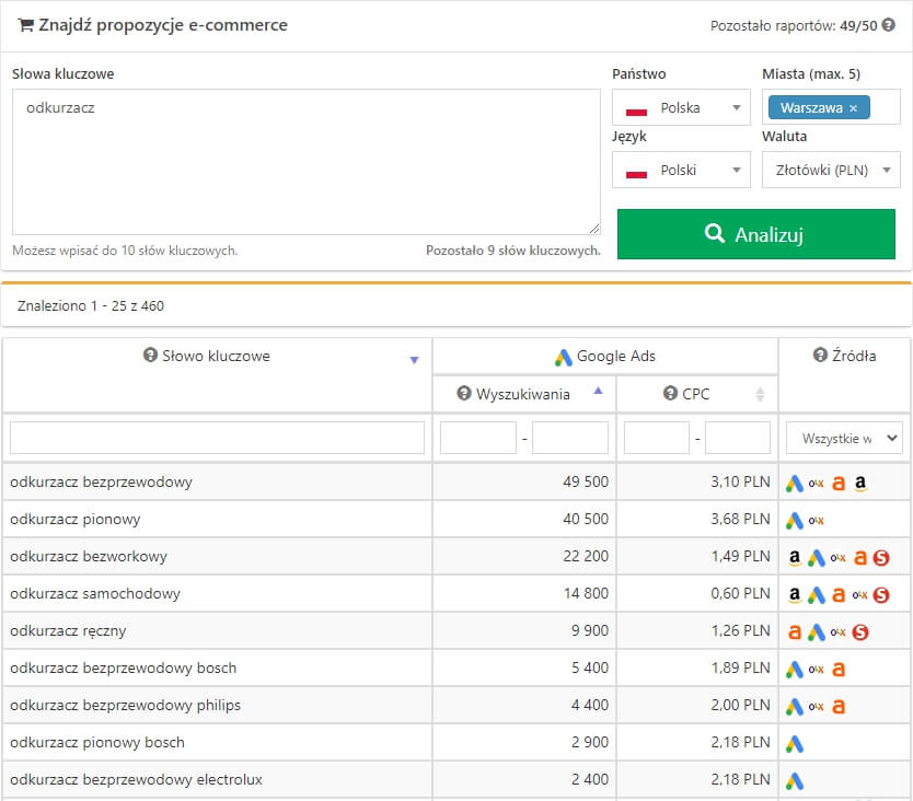 Narzędzia SEMSTORM pozwolą Ci dobrać słowa kluczowe z różnych źródeł. Możesz uzyskać podpowiedzi wyrazów z platform e-commerce, aby znaleźć słowa sprzedażowe. Łatwo sprawdzisz, jak często internauci szukają danego zagadnienia.