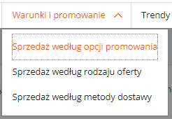 4. Warunki i promowanie – przedstawienie sprzedaży z podziałem na: