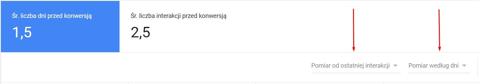 Tutaj również chodzi o kolejne wizyty klienta na stronie z reklam Google Ads. Ten raport pokazuje ile godzin lub dni mija od pierwszej interakcji bądź ostatniej interakcji do konwersji. Możemy też przełączyć się na analizę ilości interakcji przed konwersją. Dzięki nim można zweryfikować ile czasu klient potrzebuje na podjęcie decyzji.
