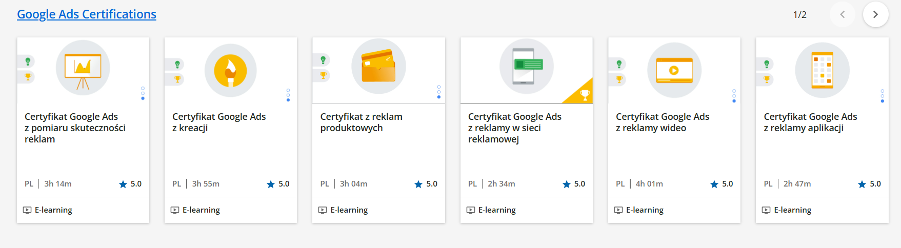 Google oferuje kilka certyfikatów, z których każdy dotyczy innego obszaru systemu reklamowego. Do wyboru mamy: