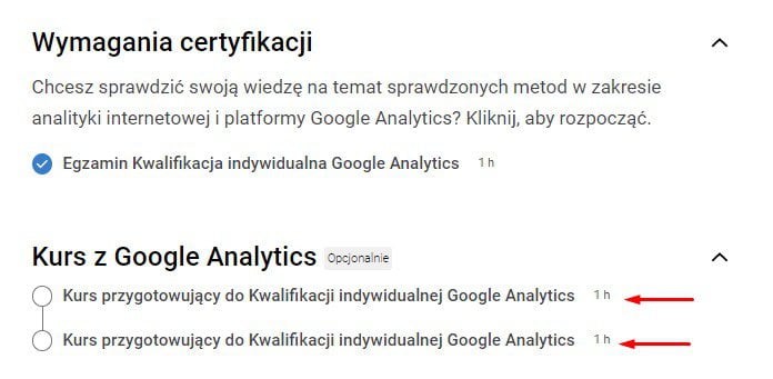 Podobnie jak wszystkie certyfikaty Google Ads, jest on dostępny na platformie Skillshop pod dokładną nazwą: Kwalifikacja indywidualna Google Analytics. Przed podejściem do egzaminu można skorzystać ze szkoleń online, stacjonarnych oraz z materiałów przygotowawczych oferowanych przez Google. Szkolenia online jak i stacjonarne są dostępne tylko dla agencji, które uczestniczą w programie Google Partners. Szkolenia te są przeprowadzane przez Certyfikowanych Trenerów Google Ads.