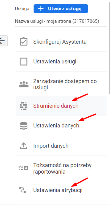 Przejdźmy zatem do konkretów, czyli trzech istotnych sekcji: Strumienie danych, Ustawienia Danych oraz Ustawienia Atrybucji: