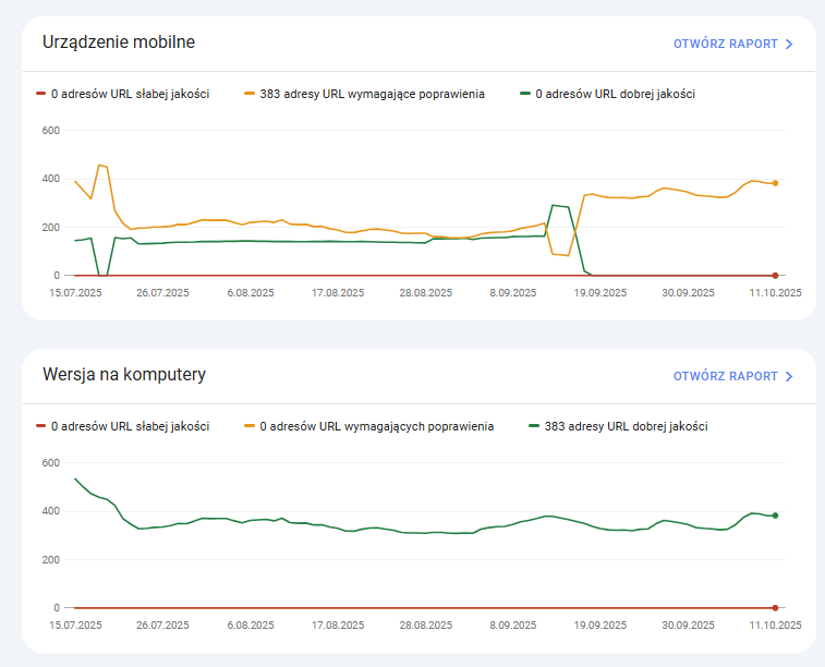 Analiza Core Web Vitals (na podstawie przykładu ze zrzutu ekranu):