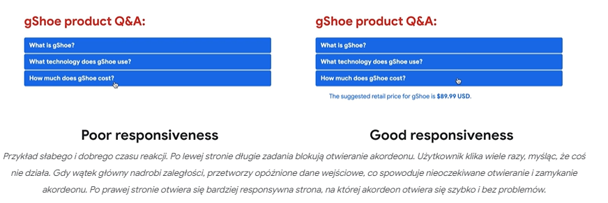Dlaczego jedna strona, mimo że ładuje się w 2 sekundy, wydaje się płynna, intuicyjna i responsywna, podczas gdy inna, z podobnym czasem ładowania, irytuje, zamraża się przy próbie kliknięcia i powoduje frustrację z powodu uciekających przycisków? Okazuje się, że szybkość to nie wszystko. Liczy się jakość tej szybkości.