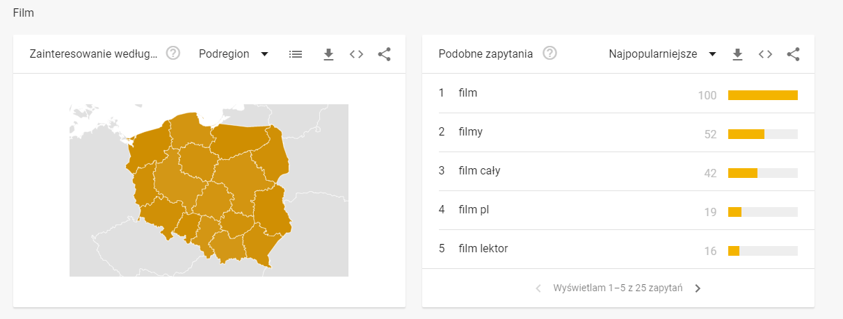 W pozostałych kategoriach także królują wyszukiwania stricte rozrywkowe i częściowo pokrywają się one z tematami z top 10 (np. Film i Lektor filmowy czy Bajki i Świnka Peppa).