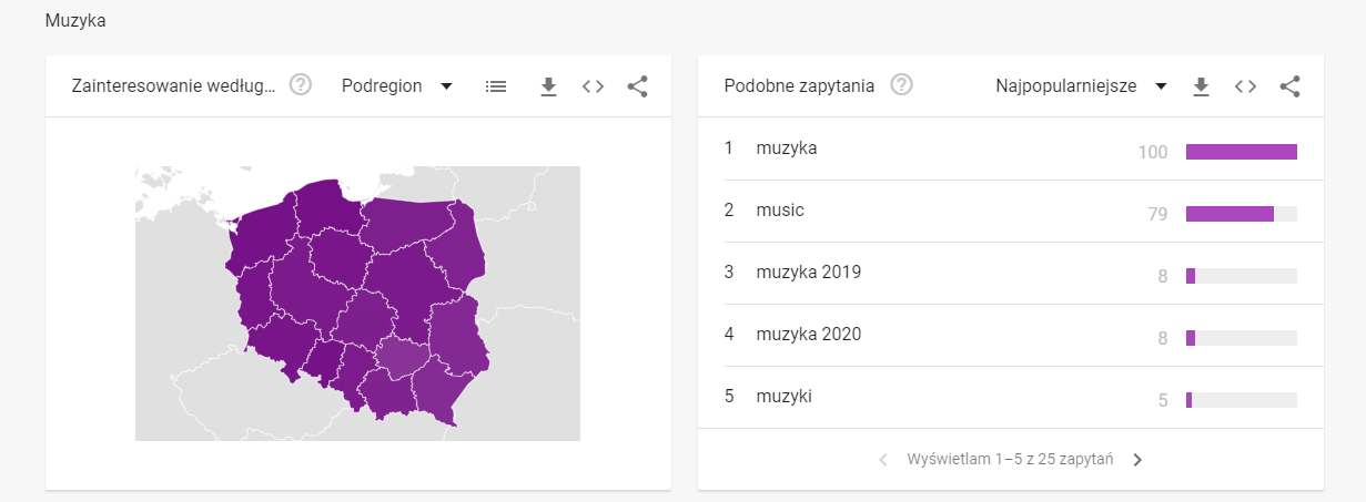 Muzyka wyszukiwana przez Polaków to przede wszystkim: muzyka 2019, muzyka 2020, najlepsza muzyka, muzyka do auta, muzyka relaksacyjna, muzyka klubowa, dance music, chill music i muzyka dla dzieci.
