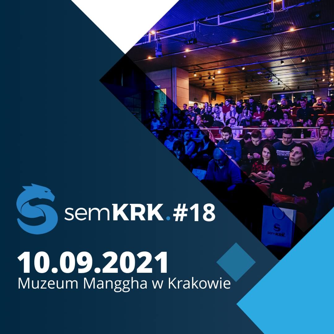 - semKRK i warsztaty towarzyszące – nasza konferencja została wprawdzie przeniesiona do on-line, niemniej jednak udało się nam przez wszystkie 3 wirtualne edycje zachować niesamowitą barcampową atmosferę i wysoki poziom merytoryczny. Nasze spotkania tworzone są dla właścicieli biznesów, działów marketingu, branży e-commerce, ale również specjalistów SEO i SEM oraz agencji marketingu internetowego. Kolejne spotkanie (mamy nadzieję już offline) planujemy już we wrześniu!