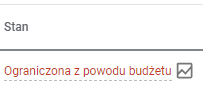 Jeżeli pojawi się w niej alert na czerwono z tekstem “Ograniczona z powodu budżetu” może to być przyczyna braku wyświetlenia reklamy. W takim przypadku należy zwiększyć dzienny budżet kampanii.