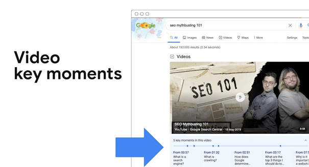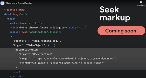 Nowe uporządkowane dane mają za zadanie pomóc Google wykrywać w filmie segmenty i pokazywać użytkownikom najważniejsze momenty. Używanie znaczników Clip lub SeekToAction może wzbogacić wyniki wyszukiwania filmów w wyszukiwarce.