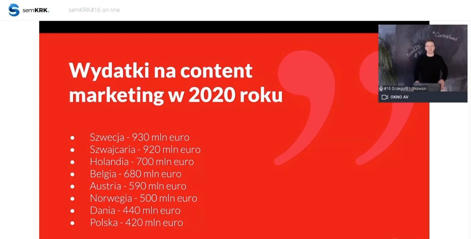 Grzegorz Miłkowski zagościł na wirtualnej scenie semKRK#16 z prelekcją: „Biznes pełen treści. Jak wdrożyć content marketing, który zwiększy sprzedaż”. Jest współwłaścicielem i prezesem zarządu ContentHouse, jednej z wiodących (według Media&Marketing Polska) agencji contentmarketingowych w Polsce. Grzegorz to ekspert ds. digital marketingu w Business Centre Club, który doradza zrzeszonym firmom z zakresu komunikacji oraz transformacji cyfrowej. Jest również twórcą Akademii Marketingu, projektu edukacyjnego dedykowanego osobom chcącym rozwijać swoje kompetencje z zakresu digital marketingu.