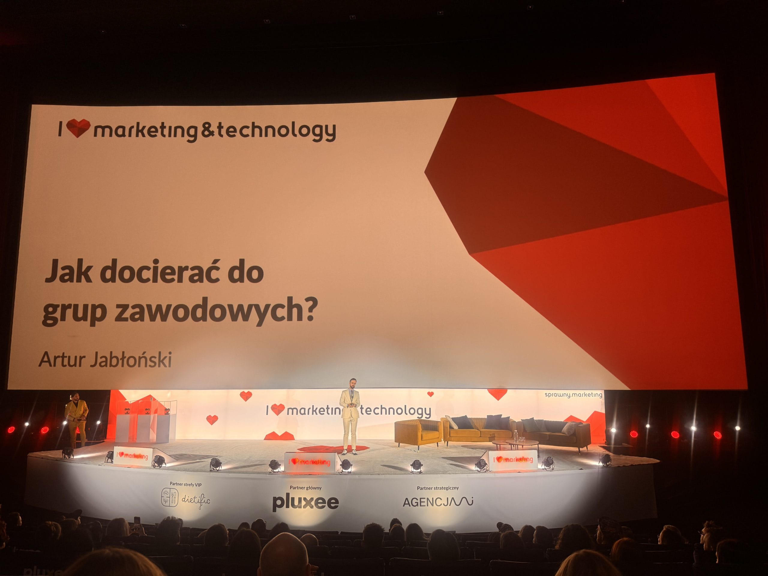 Podczas swojego wystąpienia Artur Jabłoński przedstawił, a raczej można rzec, uświadamiał na temat sposobu docierania do odpowiednich grup zawodowych. Jedną z rzeczy, którą powinniśmy dodatkowo wziąć pod uwagę, to nie tylko targetowanie reklamy w odpowiednie miejsce, ale uwzględnienie potrzeby identyfikacji z daną grupą zawodową. Poprzez dostosowanie się do narracji grupy będziemy łatwiej mogli pokierować ich uwagą, ale również pominiemy nieodpowiednie osoby. Pojawiły się również przykłady wielu mniej lub bardziej udanych kampanii reklamowych (jak tego nie robić). Posłużył się także świetną sentencją Petera Druckera, która podsumowała jego wystąpienie: „Kiedy marketing jest zrobiony właściwie, sprzedawanie właściwie nie jest konieczne”.