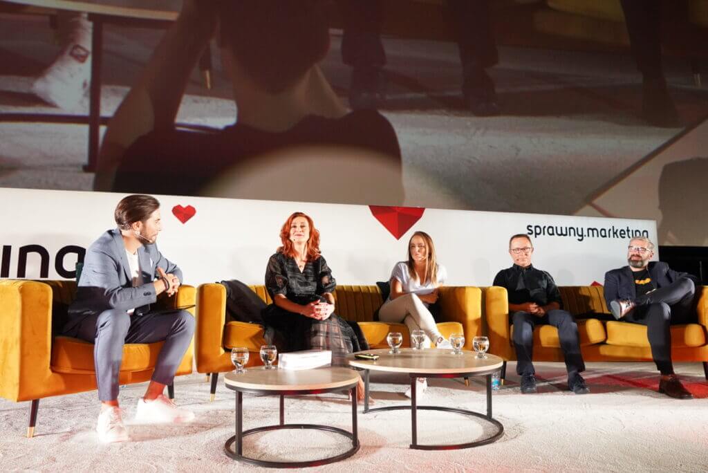 Ciekawą formą okazały się również panele dyskusyjne prowadzone z prelegentami na bieżąco wprost ze sceny. Była to więc swoista hybryda wydarzenia offline i online, ponieważ osoby oglądające konferencję w swoich biurach czy zaciszach domowych również mogły zadawać pytania (tak, jak uczestnicy zebrani w Sali kinowej) poprzez wybranie podanego na ekranie numeru telefonu. Dla wszystkich osób, które dodzwoniły się do studia SprawnyMarketing przygotował nagrody książkowe.