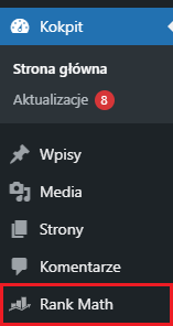 - Kolejno kliknij w zakładkę „Rank Math”, która powinna się już pojawić