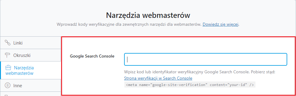 - Ostatnim krokiem jest dodanie skopiowanego meta tagu i zapisanie zmian: