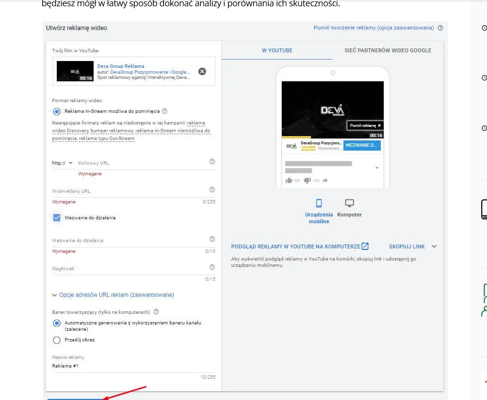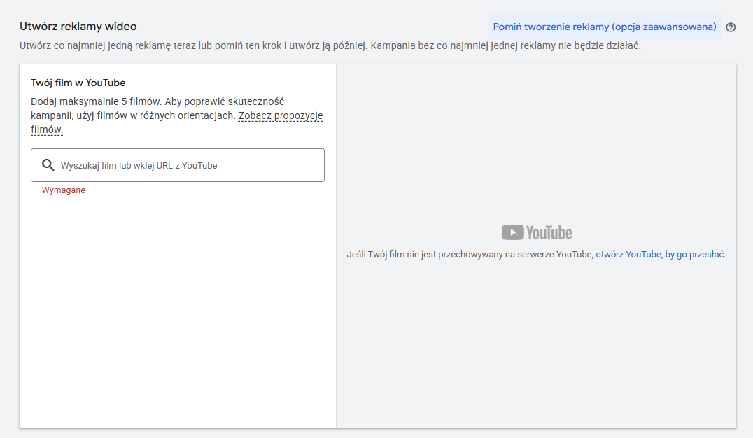 TIP: Przypominamy, że film wideo do reklam In-Stream niemożliwych do pominięcia nie może być dłuższy niż 15 sekund!