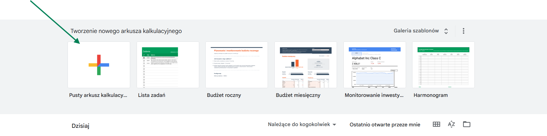 1. Utwórz nowy dokument Arkuszy Google na stronie:
