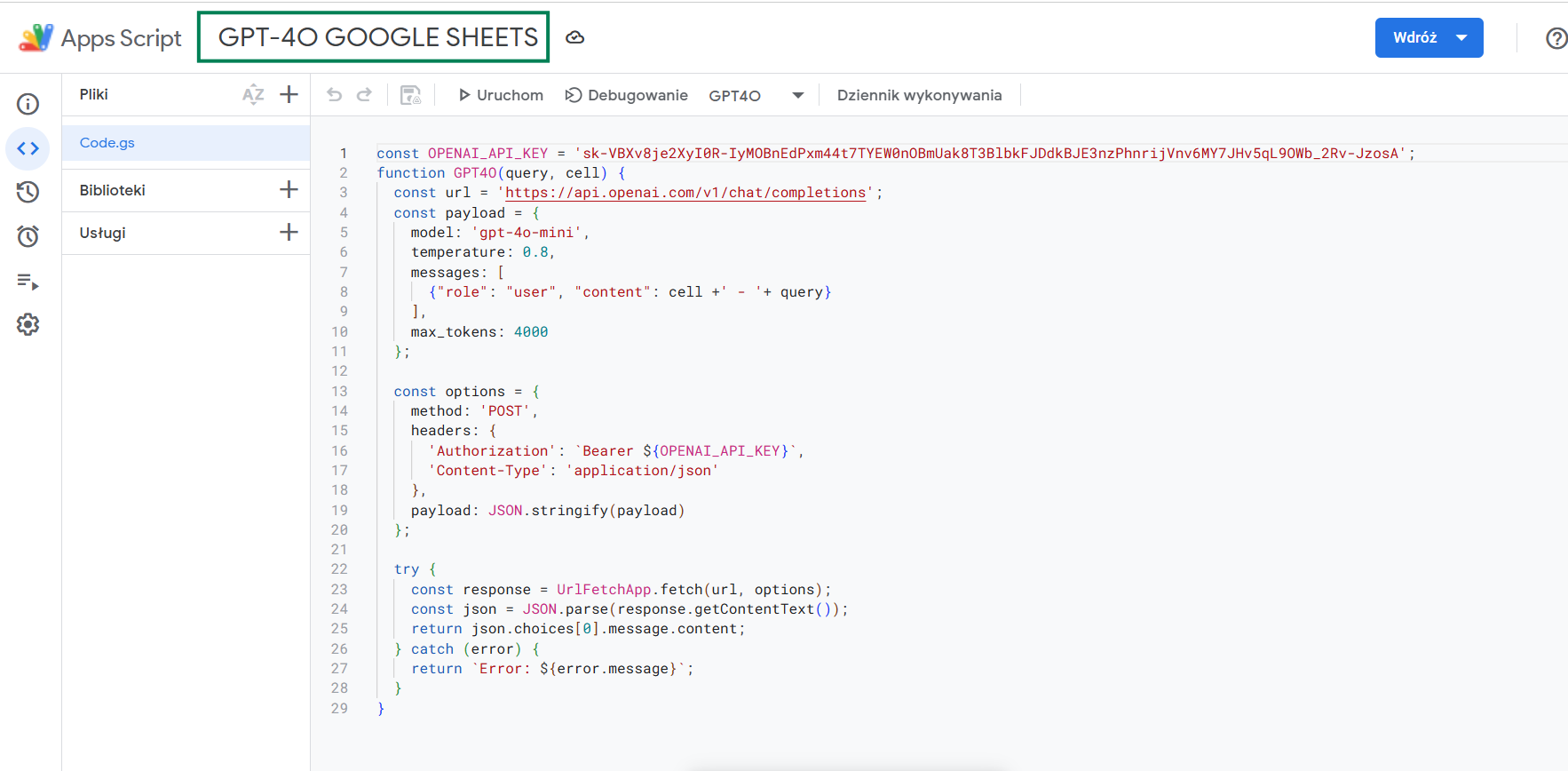 Integracja Arkuszy Google z GPT-4o krok po kroku