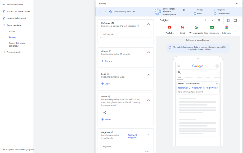 Ustalamy również harmonogram reklam, lokalizację, języki, odpowiednie adresy URL czy rozszerzenia. W trakcie trwania kampanii możemy natomiast przeprowadzać testy grup zasobów, analizować statystyki czy weryfikować raporty. Dlatego mimo coraz szerszej automatyzacji, ludzkie spojrzenie i analiza reklam jest równie nieoceniona, co w przypadku klasycznych typów kampanii w Google Ads.