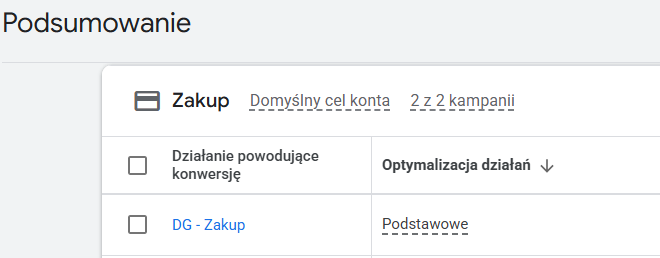 3. Kliknij w nazwę konkretnej konwersji (np. „Zakup”).