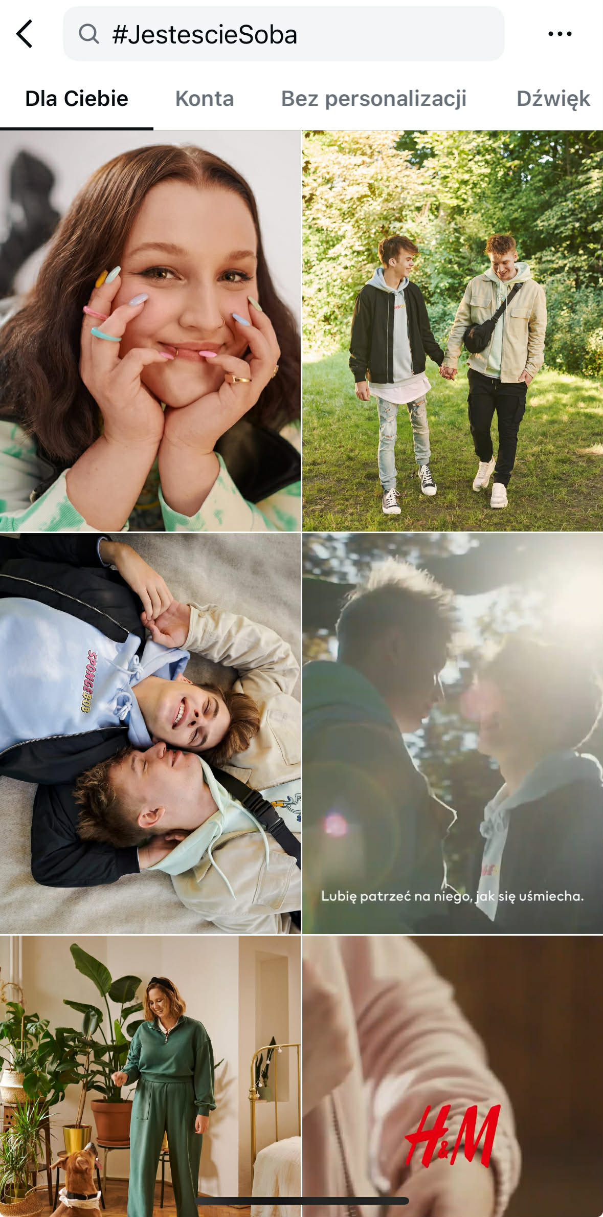 Influencerzy publikowali naturalne zdjęcia i krótkie materiały wideo, w których prezentowali stylizacje w swoim własnym klimacie – bez przesadnej ekspresji czy sztucznej narracji. Kampania skupiała się bardziej na emocji i przesłaniu niż na konkretnym produkcie. Efektem było wzmocnienie wizerunku H&M jako marki inkluzywnej i bliskiej codziennemu życiu odbiorców, a nie tylko sieci modowej pokazującej sezonowe trendy.