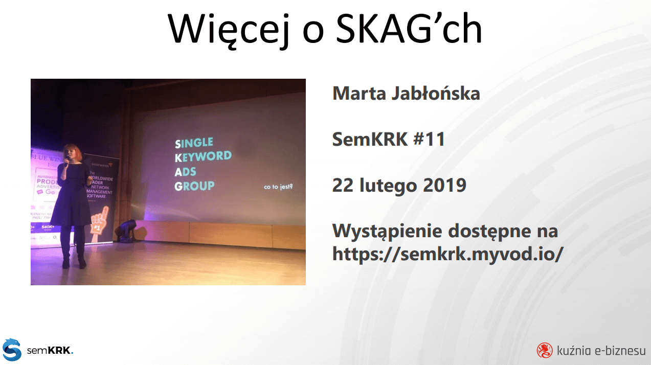 Pamiętajcie, że wybrane wystąpienia prelegentów z semKRK#10 – #15 można zobaczyć na naszej platformie: https://semkrk.myvod.io/