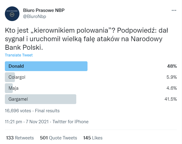 Myślę, że jak co roku wszyscy bacznie obserwujący wiodące konta w social media, mogli zauważyć kilka spektakularnych kampanii, które delikatnie mówiąc nie wypaliły, m.in. Cyberpunk 2077 czy PlayStation 5. Moim zdecydowanym faworytem marketingowym jest jednak konto na Twitterze Biura Prasowego Narodowego Banku Polskiego. Komentarz do tej akcji marketingowej zbędny.
