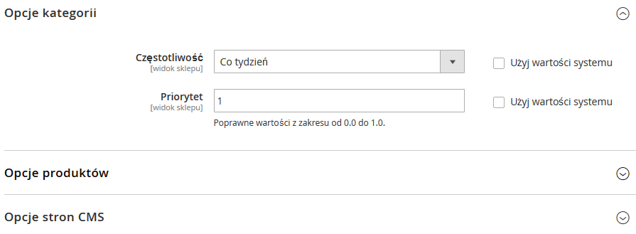 Poprawnie utworzona mapa strony będzie skutecznie wspomagała indeksację sklepu internetowego na Magento i wskazywała robotom wyszukiwarki nowe adresy produktów do indeksacji. Aby utworzyć mapę strony w formacie XML w Magento 2, należy przejść do sekcji SKLEPY -> Ustawienia -> Konfiguracja -> Katalog -> Mapa witryny (XML). Następnie możemy skonfigurować częstotliwość aktualizacji mapy i priorytety dla produktów, kategorii i statycznych stron. W zależności od wielkości sklepu i liczby produktów, wartości te należy dostosować indywidualnie do specyfiki Twojego sklepu internetowego.