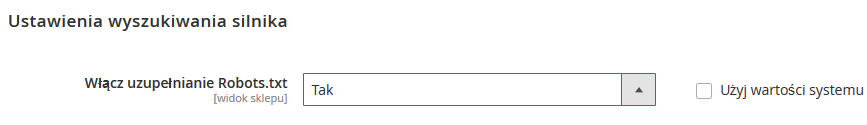 Ostatnia sekcja dotycząca ustawień mapy strony to „Ustawienia wyszukiwania silnika”, gdzie możemy dodać link z adresem mapy sklepu do pliku robots.txt.