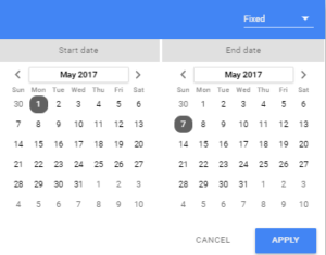 Rys. 2: Kalendarz w Data Studio, który umożliwia klientowi wybranie interesującego go zakresu dat.