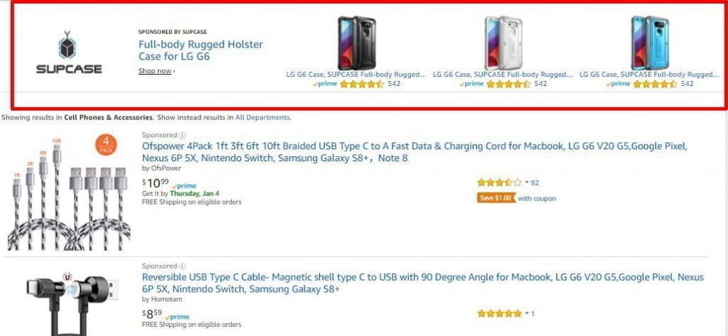 Reklamy pojawiają się na stronie wyników wyszukiwania produktów, nad wynikami organicznymi (dla kont Seller Central) lub pod nimi (dla kont Amazon Marketing Service). Mają one dyskretne oznaczenie jako reklamy „sponsorowane”. Są one wyświetlane jak zwykłe informacje o produkcie (mają cenę, opinie itp.) i trudno je na pierwszy rzut oka odróżnić od zwykłych wyników wyszukiwania sklepu Amazon.