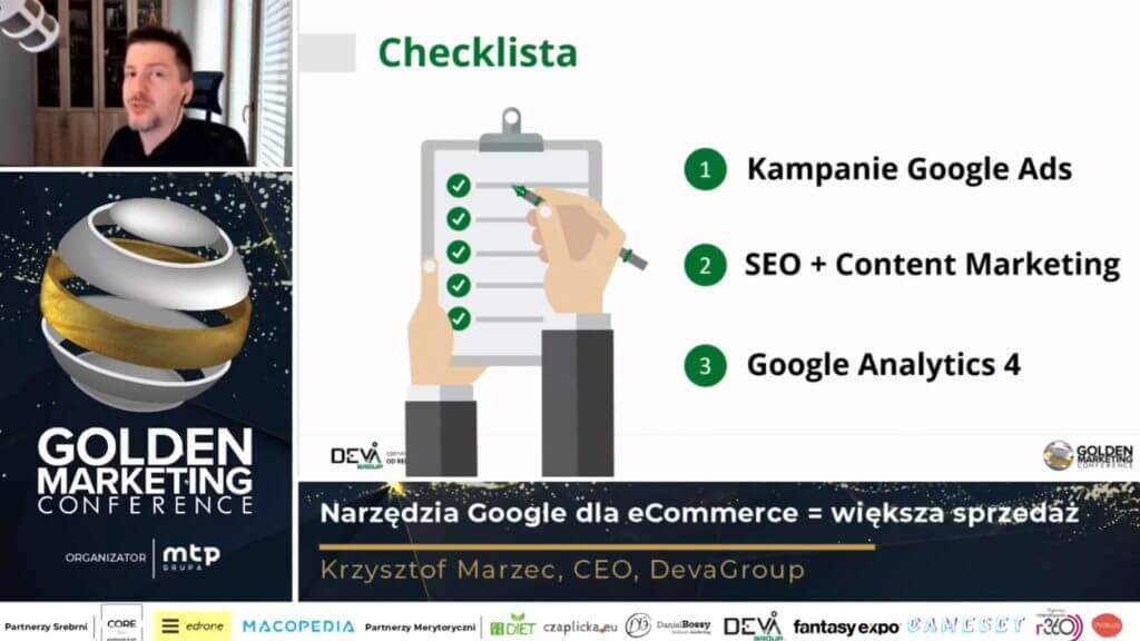 W pierwszej połowie konferencji Krzysztof Marzec wystąpił ze swoją prelekcją pt. „Narzędzia Google dla eCommerce = większa sprzedaż”.