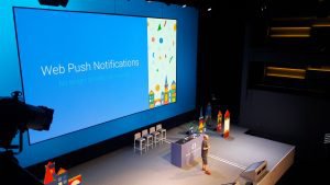 Już pierwsza sesja, odbywająca się w głównym audytorium, zaraz po otwierającym konferencję Keynote, dotyczyła Progressive Web Apps. W skrócie można określić je jako kombinację stron internetowych oraz aplikacji mobilnych, otwierającą przed twórcami stron zupełnie nowe możliwości.