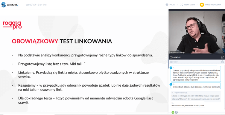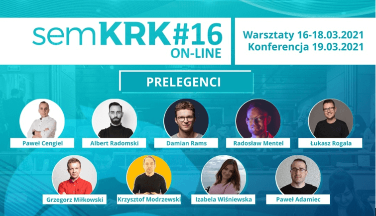 To już 16 edycja konferencji semKRK – jednego z najważniejszych wydarzeń z branży SEO i SEM! Zaproszono 9 ekspertów z dziedziny marketingu internetowego, którzy podzielili się swoją wiedzą i doświadczeniem. Nowinki z branży, ciekawe case study i pełno wskazówek o tym co zrobić, aby biznes on-line był skuteczniejszy! Wydarzenie po raz drugi odbyło się w wersji online, ale poziom merytoryczny był wysoki!