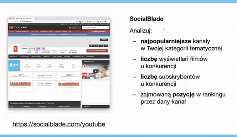 Do planowania i optymalizacji działań na Youtube korzystaj z odpowiednich rozwiązań. Ciekawe narzędzia, pomocne do analizy kanałów na YouTube to SocialBlade oraz vidIQ.