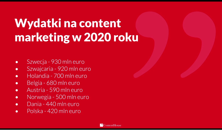 Jako ostatni wystąpił Grzegorz Miłkowski, który doradzał jak wdrożyć skuteczny content marketing. Okazuje się, że w 2020 w Polsce wydano aż 420 milionów euro na działania content marketingowe, ale daleko nam do podium – najwięcej wydała bowiem Szwecja, aż 930 mln euro!