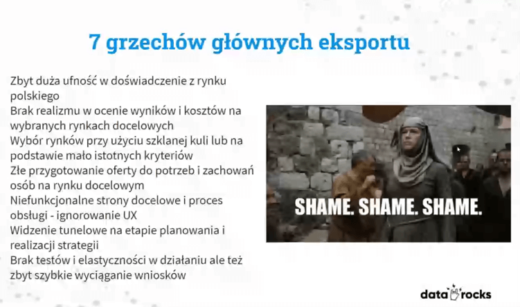 Prelegent omówił również błędy najczęściej popełniane podczas wchodzenia na rynki zagraniczne.