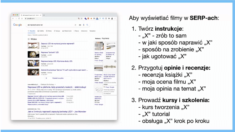 - Opis filmu powinien zawierać linkowanie wewnętrzne i zewnętrzne, tagi oraz słowa kluczowe.
