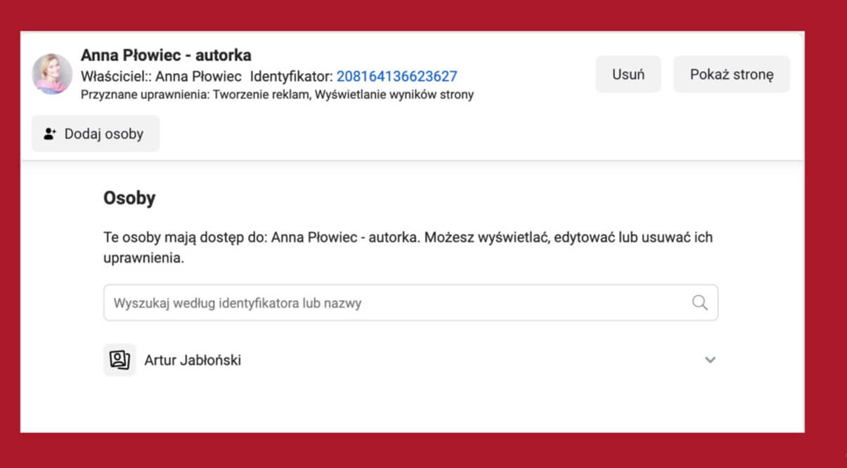 Przykładowy dostęp reklamodawcy do danego FanPage