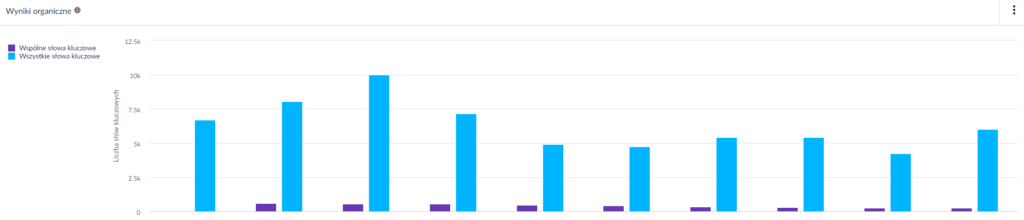 W raporcie przedstawionym poniżej Senuto podsuwa nam informacje o tym, jakie witryny stanowią naszą konkurencję. Zestawia od razu ze sobą ilości fraz, na które wszystkie strony się pojawiają i przedstawia także jaka część „naszych” fraz kluczowych powtarza się na stronach konkurencyjnych.