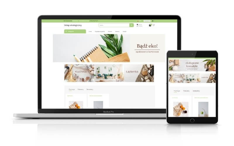 - nowoczesną kreację graficzną, odpowiednią do branży Twojego sklepu, który będzie doskonale się prezentować i działać zarówno na komputerach, jak i urządzeniach mobilnych,