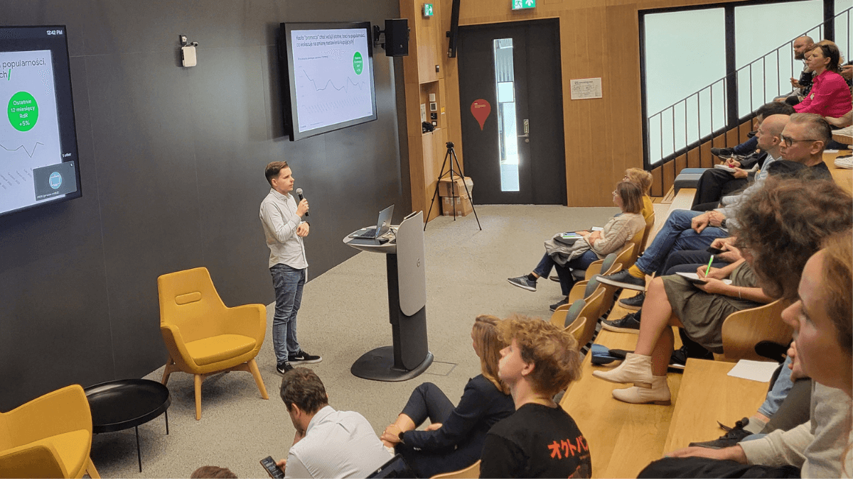 Kolejną prelekcję wygłosił nasz Head of SEO, Kamil Sroka, który podzielił praktycznymi poradami dotyczącymi tego, jak tworzyć treści, które sprzedają. Klienci dowiedzieli się m.in. na co szczególnie zwracać uwagę przy tworzeniu contentu, jakie elementy tekstu przyciągają uwagę odbiorców, oraz jak analizować dane, by tworzyć treści o wysokiej skuteczności. Kamil podkreślił również, dlaczego warto integrować działania SEO z kampaniami Google Ads, aby maksymalizować efekty. W prelekcji nie zabrakło wielu humorystycznych wstawek, które pomogły naszym Klientom lepiej przyswoić wiedzę, a aktywne uczestnictwo nagradzane było słodkimi upominkami.