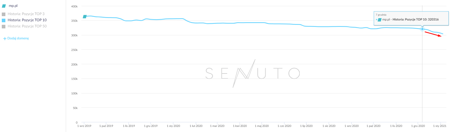 Poniżej dokonałem analizy kilku wybranych serwisów, które zaliczyły duże spadki widoczności w TOP10.