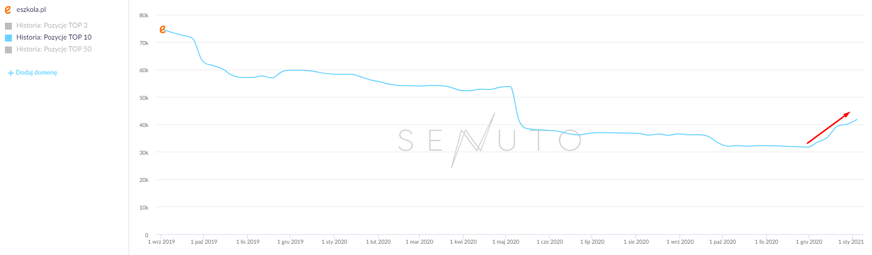 Serwis ten jest kolejnym przykładem, gdzie wzrosty grudniowe są korektą po zmianach w algorytmie (w styczniu 2020 oraz maju 2020).