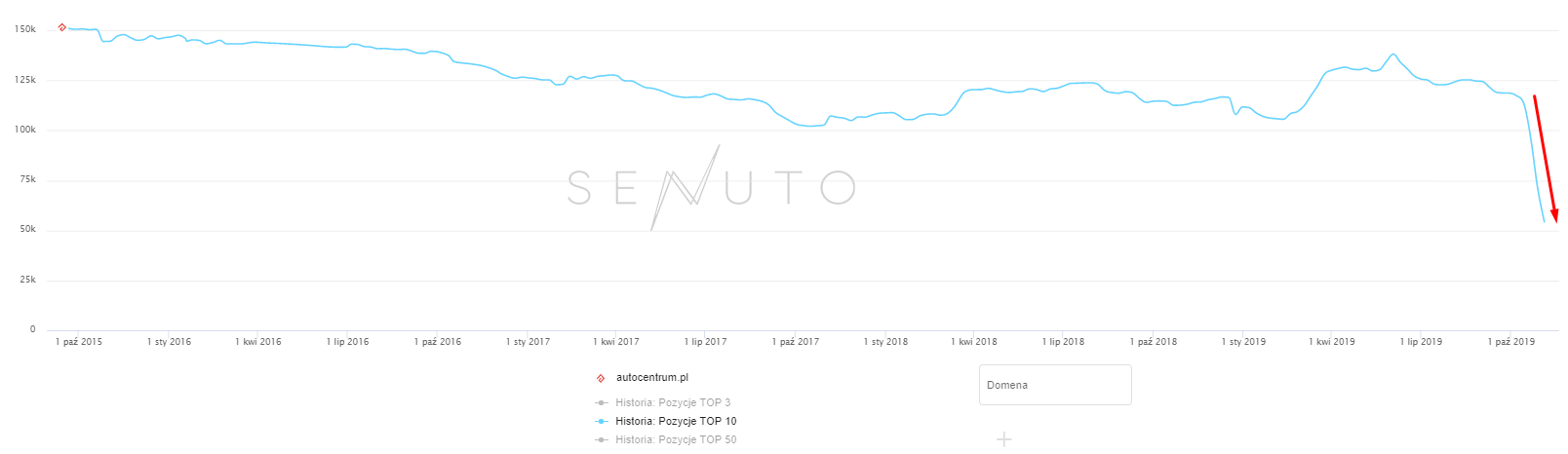 Poniżej dokonałem analizy kilku wybranych serwisów, które zaliczyły duże spadki widoczności w TOP10.