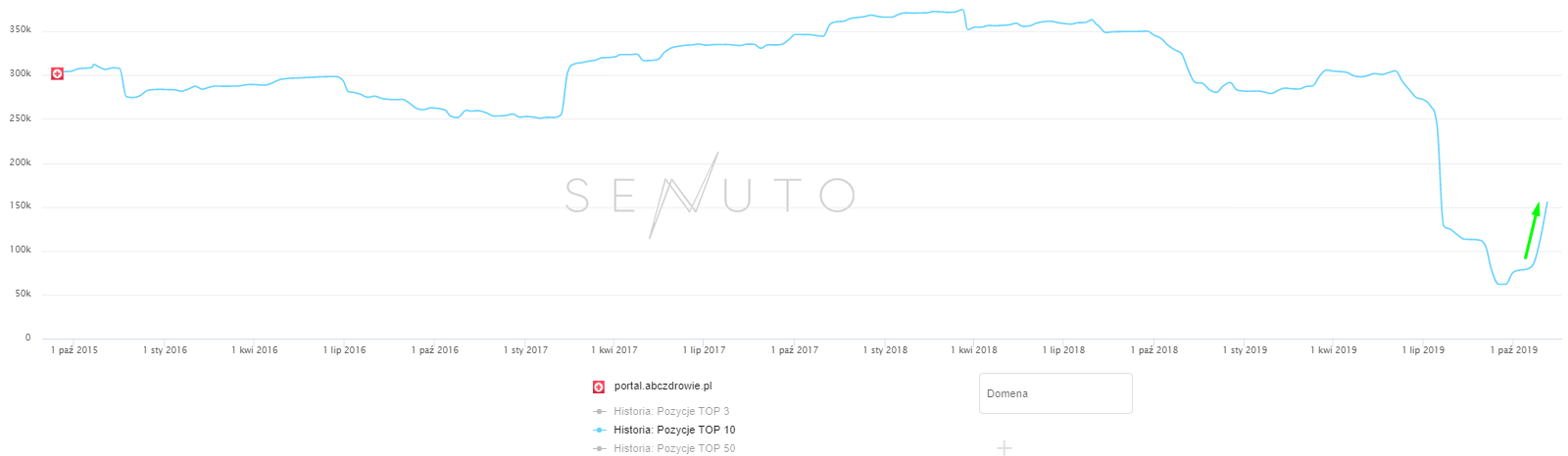 Jednym z serwisów, który odnotował duży wzrost liczby słów kluczowych w TOP10, jest portal portal.abczdrowie.pl.