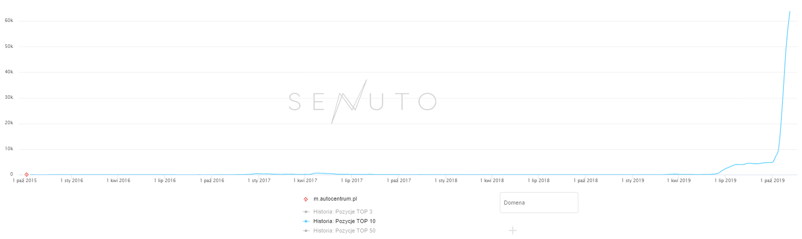 Subdomena ta w październiku odnotowała wzrost widoczności, która wynika z przesunięcia widoczności z domeny głównej.