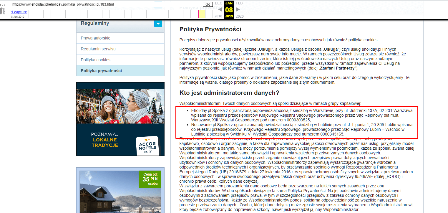 Właścicielem serwisu była grupa WP i administratorem danych były dwa podmioty:
