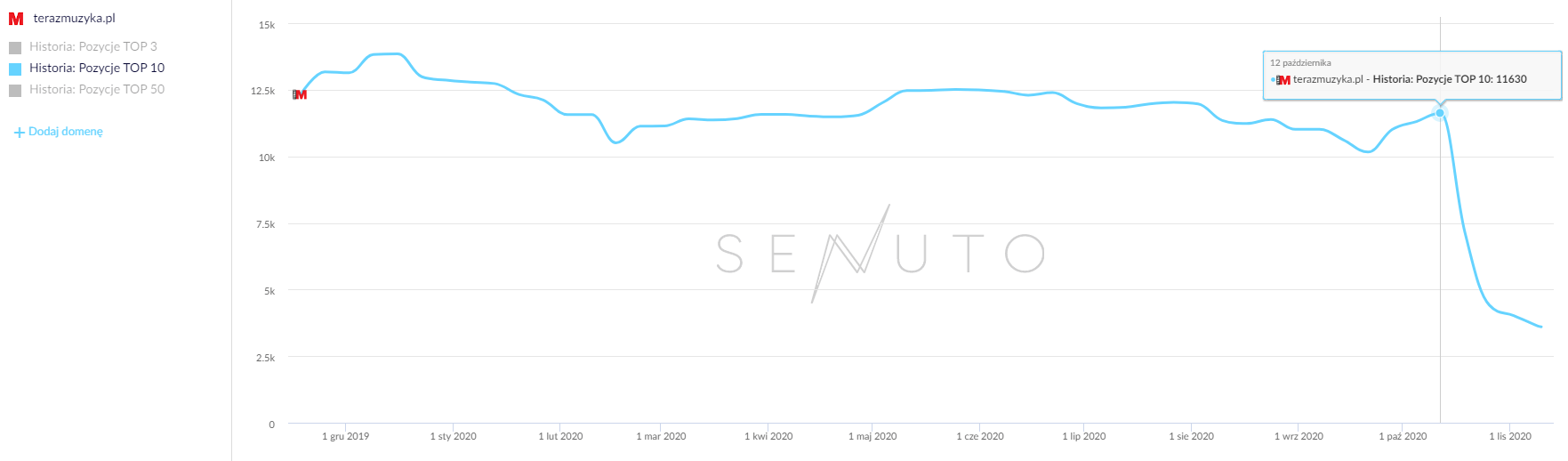 Kontynuujemy serię artykułów z podsumowaniem zmian w wynikach wyszukiwania, które nastąpiły w poprzednim miesiącu. Dziś przedstawię efekty zmian widoczności w październiku 2020. Porównaliśmy dane z pierwszego tygodnia listopada vs dane z pierwszego tygodnia października. Oprócz publikacji listy największych spadków i wzrostów widoczności domen w TOP10, staramy się przeanalizować sytuację kilku z nich. Ma to na celu stworzenia pewnego case study oraz zachęcenia branży SEO do podzielenia się własnymi obserwacjami i wnioskami na ten temat.