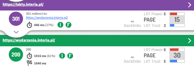 Podobnie, jak w przypadku w/w serwisu – tak i tutaj zmiana następuje dość szybko, jak na nowy serwis. Tutaj również wpływ ma przekierowanie 301:
